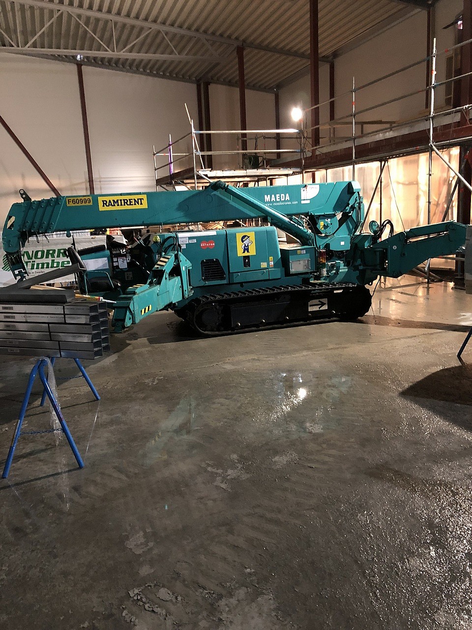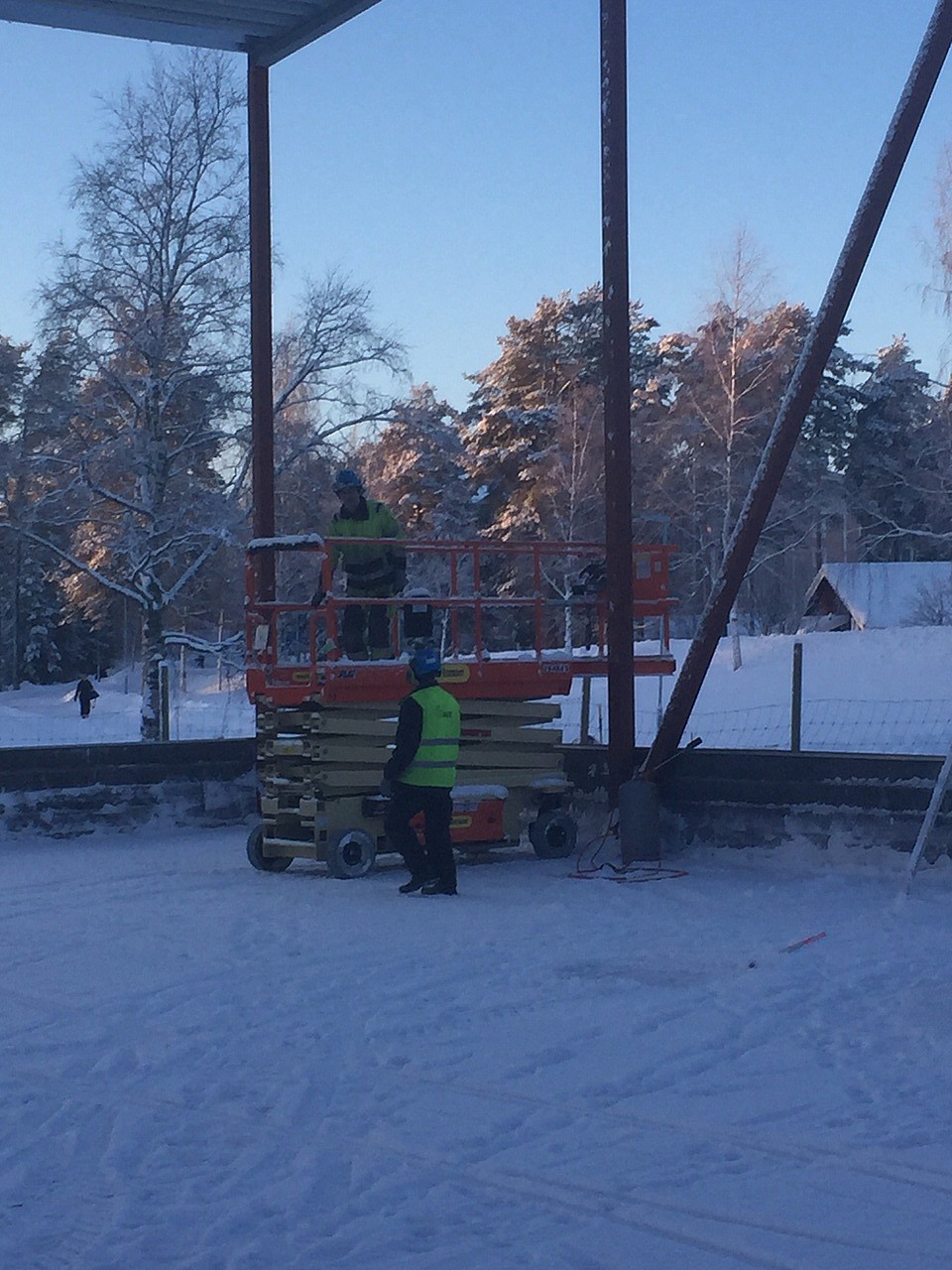 Nu har vi tagit in en larvig kran för upplyftning av matriel på läktaren.
