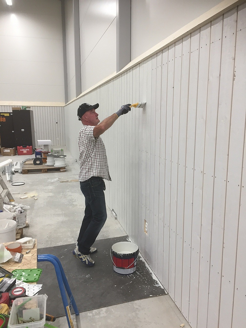 Målning av panelväggar i hallen, Ture Folkesson in action
