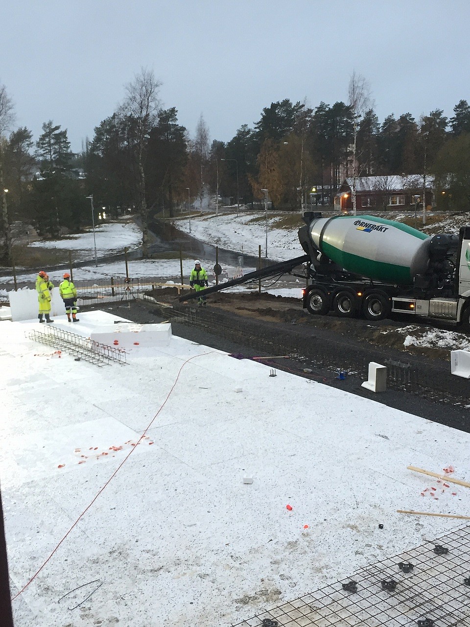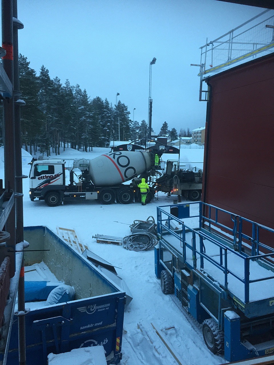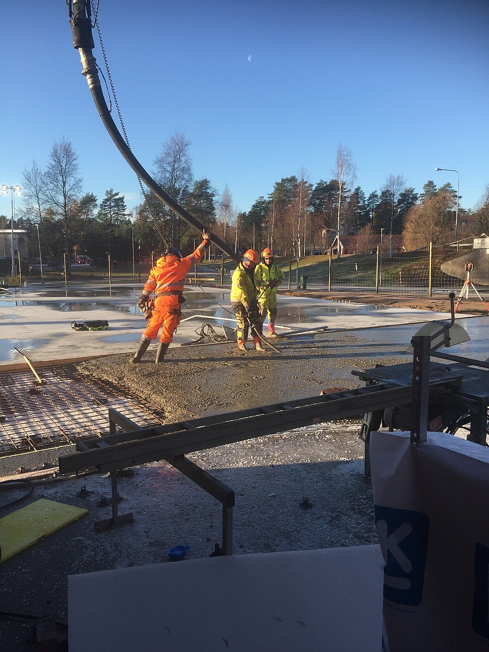 Nu är första gjutningen gjord i gropen mot cykelbanan...