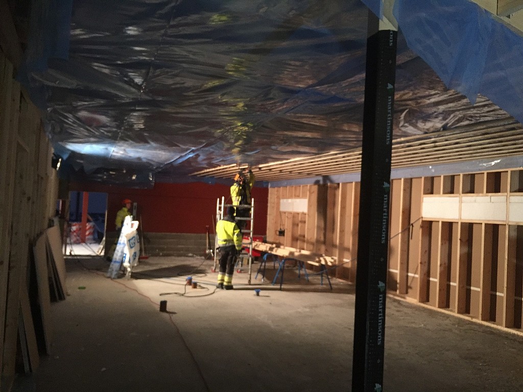 Undertaket på hallen läggs nu.snart startar jobbet med väggarna...