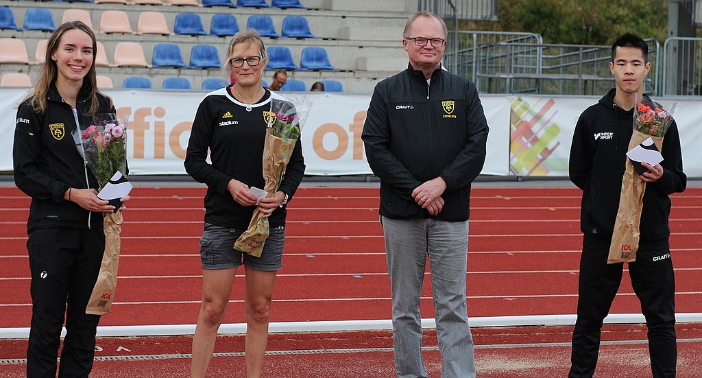 I kväll passade styrelsen på att uppmärksamma UIF:s duktiga friidrottare efter helgen framgångar vid SM-tävlingarna i Uppsala. Jessica Edlund till vänster och Joel Reinholdsson till höger, flankerar Helena Karlsson som ordförande Mikael Berglund passade på att uppmärksamma för ett långt engagemang som ledare, tränare och pådrivare i friidrottssektionen. Jessica satte ett prydligt personligt rekord på specialdistansen 1500 m, räckte dock inte till medalj men en finfin 4:e placering. Joel tog hem föreningens första manliga medalj i parasportsklassens 100 meter. Vi ser framemot nya press och medaljer. Grattis.